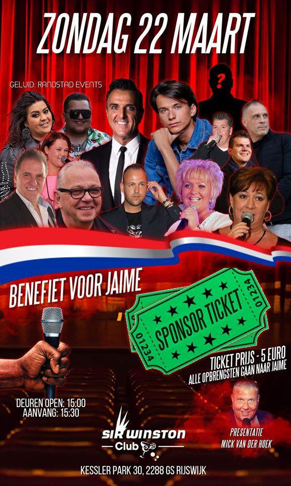 Ook de Haagse Kids Foundation helpt mee om geld in te zamelen voor Jayme. Elke 5 euro gaat compleet naar Jayme! Zondag 22 maart 2020 vanaf 15.30 treden vele bekende artiesten op. Ook zal Wesley Massing, gevolgd door een camerateam van RTL, een cheque komen overhandigen.