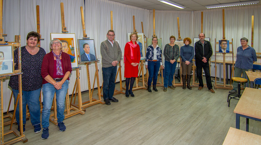 Dat werd dus poseren op 29 september voor 14 schilders/tekenaars. “En dan te bedenken dat er nog nooit een portret van mij is gemaakt”, aldus de burgervader. Dan is het moment daar, want dan mogen alle 14 doeken er af worden gehaald en komt volgens Bezuijen de meest moeilijke beslissing uit zijn carrière. “Eentje moet toch de beste zijn, maar ik wil graag alle kunstenaars complimenteren. Dank dat jullie dit hebben willen doen”, om er vervolgens gekscherend aan toe te voegen: “wel fijn dat jullie allemaal mijn onderkin hebben weggelaten.”
