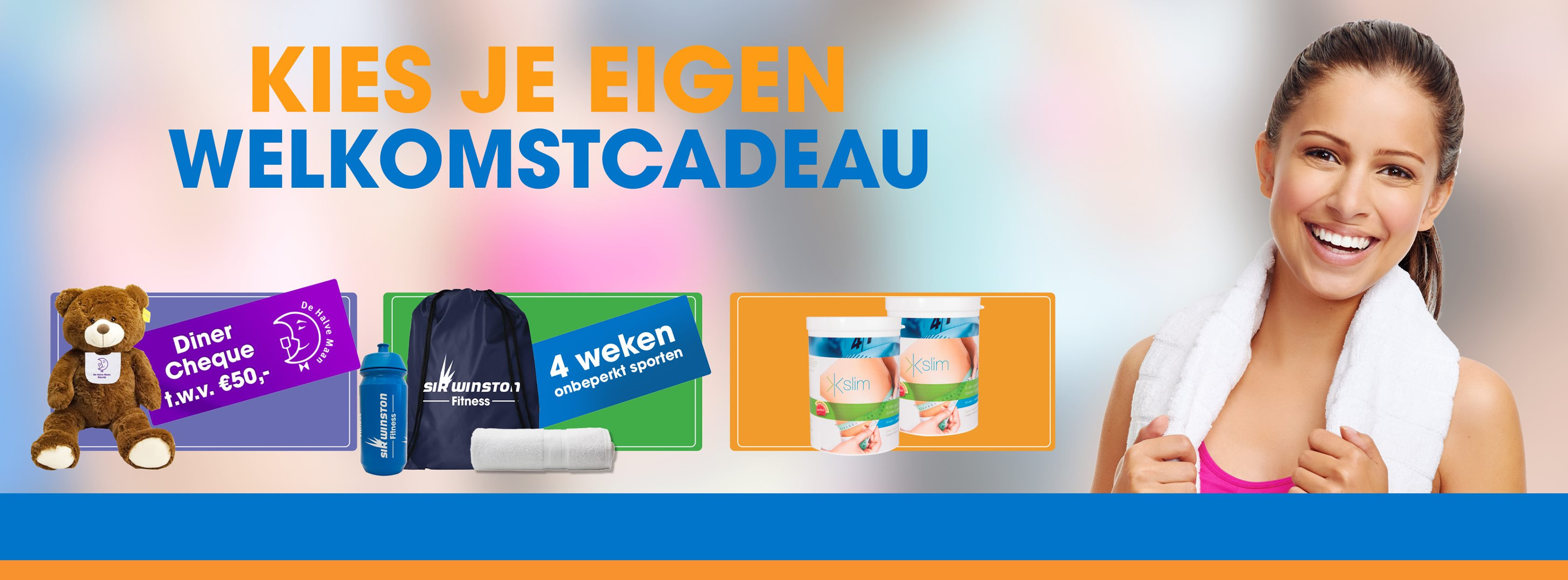 Ga jij voor de Kslim afslankkuur, het sportpakket met 4 weken gratis sporten of kies je voor de dinercheque t.w.v. €50,- in grandcafé de Halve Maan en die superlieve knuffelbeer (90 cm)?