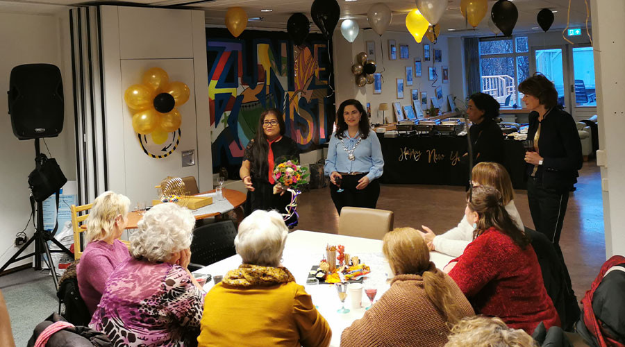 Het was de eerste keer sinds haar aantreden dat burgemeester Huri Sahin een bezoek bracht aan Studio Welzijn, het wijkcentrum in de Muziekbuurt van waaruit veel sociale activiteiten worden ondernomen. Vandaag namen zo’n veertig wijkbewoners deel aan de nieuwjaarsbingo van de bewonersorganisatie Muziekbuurt.