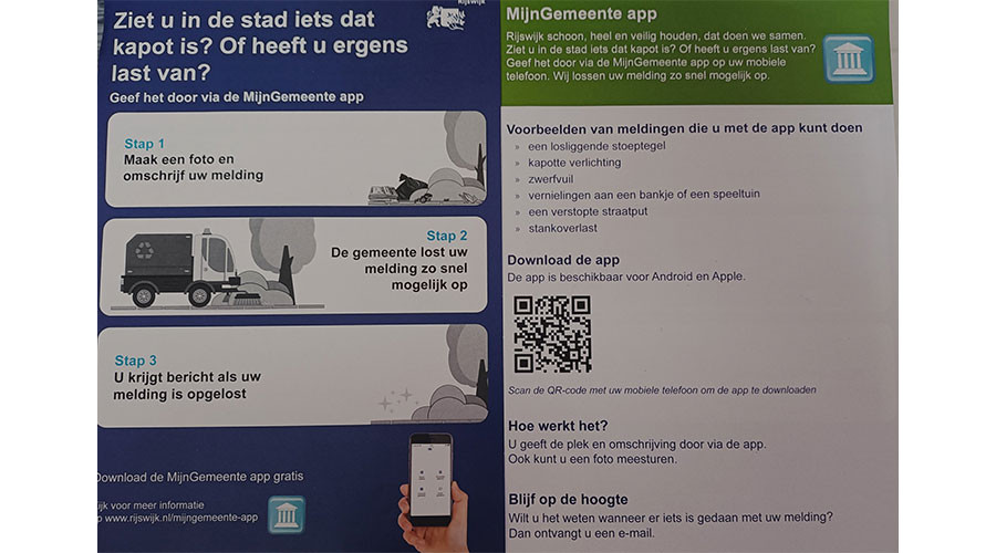 Ook als inwoner van Rijswijk kunt men makkelijk een melding maken met de 'MijnGemeenteApp'.