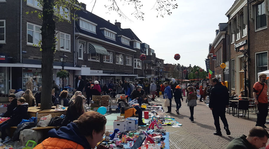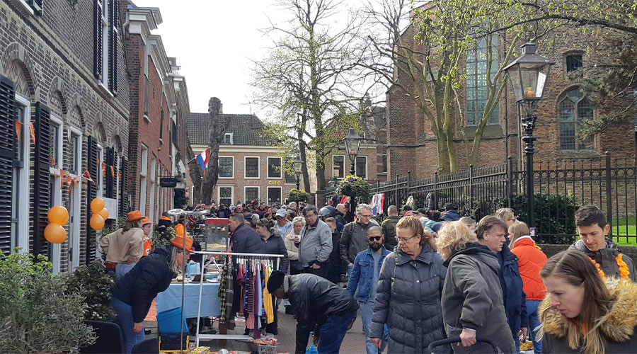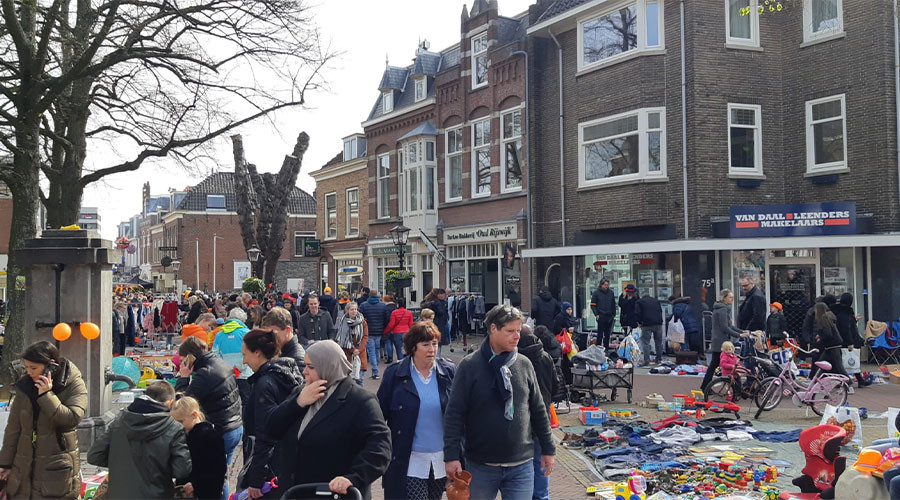 Rijswijks Dagblad is aanwezig bij de vrijmarkt in Oud Rijswijk ter ere van Koningsdag. De sfeer zit er al meteen goed in.