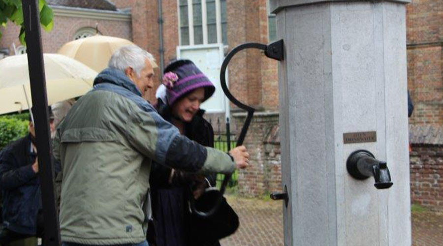 Ze werden door de voorzitter van stichting 'Mooi Voorburg', Frouke de Boer, toegesproken. Daarna was de symbolische opening van de waterpomp in de Herenstraat.