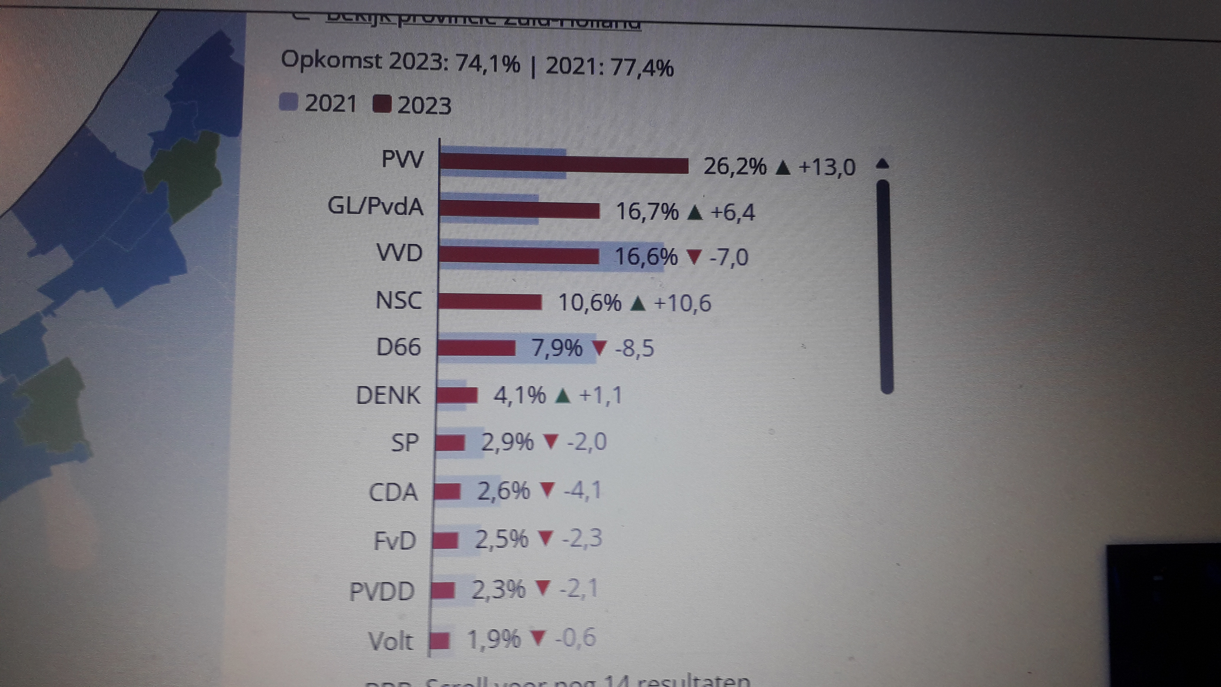 Volgens het verkiezingsuitslag van het ANP is de PVV de grootste geworden in Rijswijk. GroenLinks-PvdA de nummer twee en de VVD eindigde gisteravond als derde. Ook in Rijswijk heeft de VVD het bijzonder slecht gedaan. Hetzelfde geldt voor het CDA.