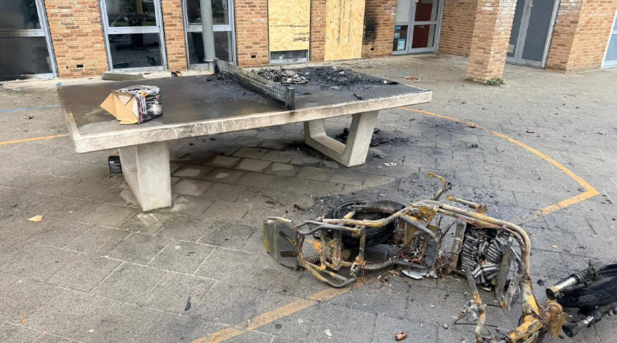 Schade, herstel en verantwoordelijkheid. Wie is juridisch en financieel verantwoordelijk voor het herstel van de beschadigde beplanting op het schoolplein als gevolg van de brandstichtingen? Wie draagt de verantwoordelijkheid voor het herstel van overige schade aan het schoolgebouw en het omliggende terrein? Wordt schade, indien daders worden geïdentificeerd, op hen verhaald, en zo nee, waarom niet? Is voorzien in voorfinanciering van herstelmaatregelen om verdere verloedering en veiligheidsrisico’s te voorkomen, en wie neemt daarin het initiatief?