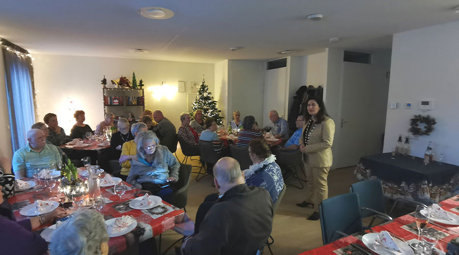 Zo’n dertig bewoners van Nieuw Benedictus hadden zich aangemeld voor het lopend buffet en een feestelijk drankje. Initiatiefnemer Marja Kambeel verwelkomde de bewoners. Daarna nam burgemeester Huri Sahin het stokje over en sprak de aanwezigen toe: “Rond de kerstdagen wil je samen zijn met elkaar. Het is mooi om te zien dat in Rijswijk zoveel inwoners initiatieven nemen om ervoor te zorgen dat iedereen mensen om zich heen heeft. Het laat zien hoe hecht en zorgzaam Rijswijkers voor elkaar zijn.”
