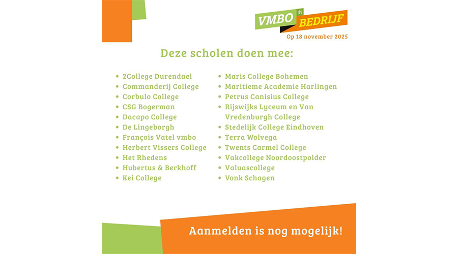 Deze vmbo-scholen doen op 18 november mee aan VMBO in bedrijf.
